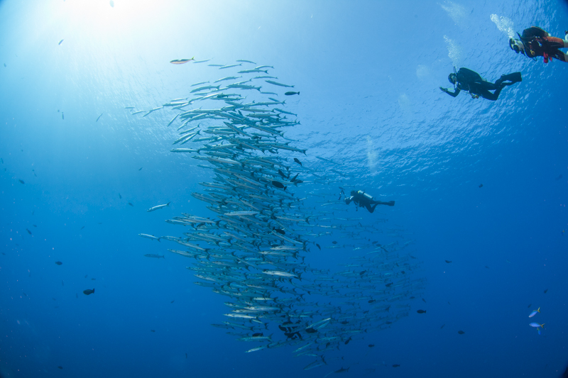 Tipp: Love is in the air .. oder besserim Wasser: Paarungszeiten und riesen Schwärme sind angesagt. Die besten Sichtungen hat man nämlich jeweils in den Tagen vor der jeweiligen Mondphase. Vor Neumond im März und April versammeln sich die Seabreams in Peleliu zu riesigen Schwärmen und die Büffelkopf Papgeienfische paaren sich ebenfalls vor dem Neumond weiter im Norden. Vor Vollmond ist es bei den Snappers so weit. Hinzu kommen Unique Dive Expeditions zu den Mantas im Norden. Alle diese Spezialtauchgänge werden von Biologen begleitet.