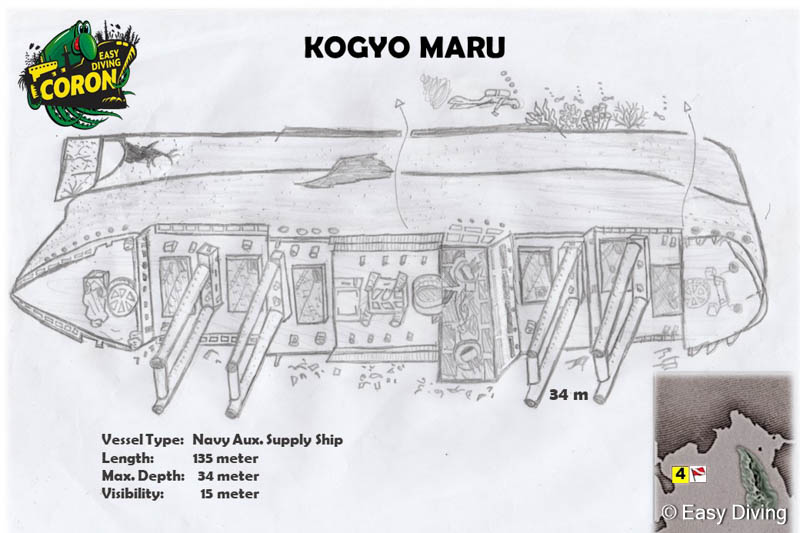 Kogyo Maru / Typ: Japanisches Frachtschiff Lage: ca. 25 Meter tief