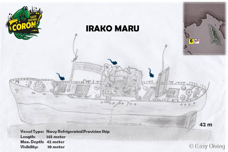 Irako / Typ: Japanisches Frachtschiff Lage: ca. 42 Meter tief