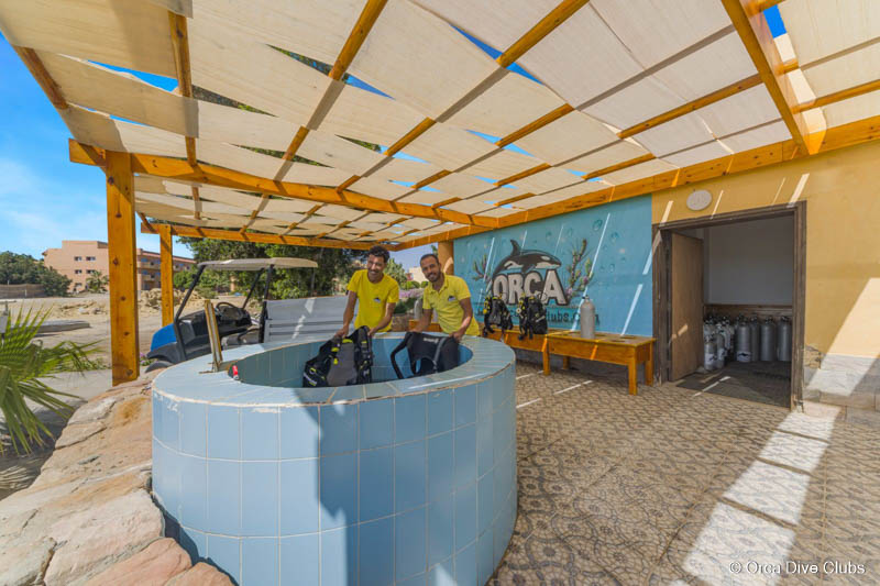 Die Orca Tauchbasis befindet sich in der Hotelanlage des Wadi Lahmy Azur Resort in unmittelbarer Nähe zum hoteleigenen Steg, der direkt ans Hausriff führt. Ausgangspunkt für Tauchausflüge zu den Riffen der Fury Shoals ist der kleine Hafen des Beduinendorfs Hamata, der nur 10 Autominuten entfernt ist.