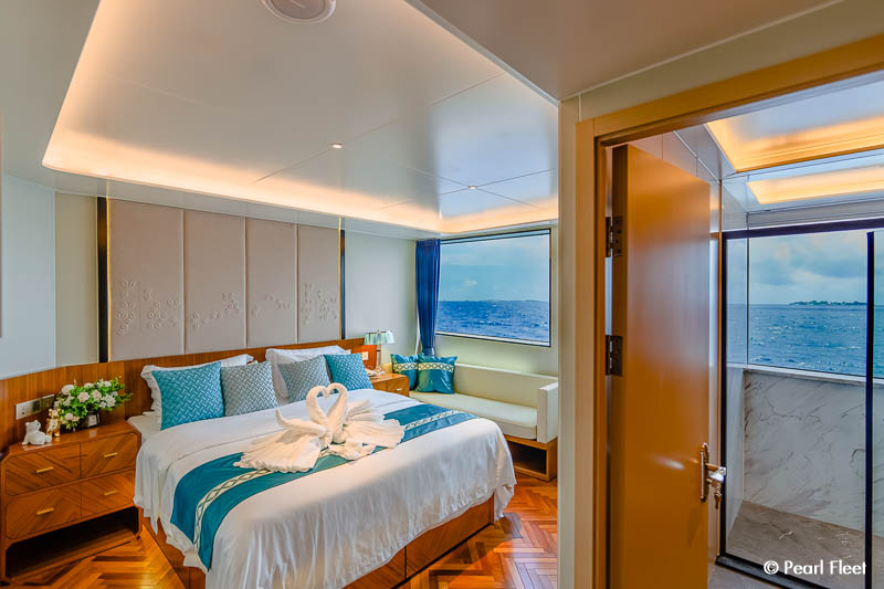 Zur Verfügung stehen 13 Kabinen, die sich in 1 Master-Suite auf dem Hauptdeck, 2 Junior-Suiten auf dem Hauptdeck und 10 Deluxe-Kabinen auf dem Oberdeck unterteilen. Alle Kabinen haben ein Kingsize- oder Doppelbett, ein einiges Bad mit Warmwasserdusche, HD-Fernseher mit Google Cast, ein Türschlosssystem mit Tastatur, Badeutensilien, Bade- und Handtücher, Kleiderhaken, Föhn, Safe, USB_Anschlüsse und ein Kommunikationssystem zwischen den Zimmern.