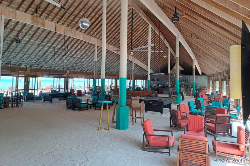 Während des Aufenthalts besuchte Alex mehrere Restaurants und Bars des Resorts, darunter die Dhoni Bar, das Kilhi Restaurant, das Keymaa Restaurant, die Dhoaraa Bar und die Meeraa Bar. Die Auswahl ist groß genug, damit sich auch bei einer Woche Aufenthalt keine Routine einschleicht. Besonders praktisch ist, dass du trotz der Größe der Insel überall leicht einen Platz findest – weder Restaurants noch Bars wirken überfüllt. Besonders schön ist der Sonnenuntergang an der Kuda Beach Bar & Grill. Da diese Bar allerdings bereits um 18 Uhr schließt, lohnt es sich, sich rechtzeitig mit einem Sundowner einzudecken und den Blick über den Indischen Ozean zu genießen.