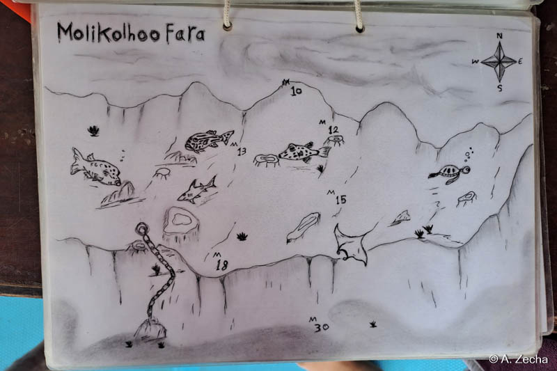 Alex’ Tauchgänge führten unter anderem nach Bushi Inside, Bushi Outside, Banana Thila, Tiger Shark Point, Manta Point, Turtle Point und zum berühmten Wrack der British Loyalty. Das Addu Atoll überrascht mit einer enormen Vielfalt: Haie, Mantas, Schildkröten, Thunfische, Muränen, Drückerfische, riesige Anemonenfelder, Clownfische, bunte Korallenlandschaften und das größte Wrack der Malediven – hier bekommst du eine beeindruckende Mischung aus Großfisch und abwechslungsreichen Riffen.