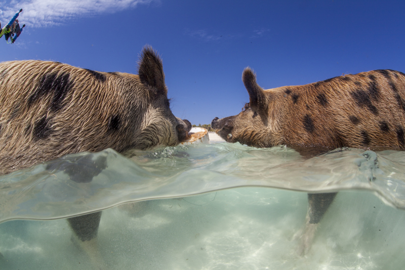 Die schwimmenden Schweine der Bahamas sind eine außergewöhnliche Attraktion auf den Exuma Cays, einer Inselgruppe der Bahamas. Diese wild lebenden Schweine haben sich erstaunlicherweise an das Leben im Wasser angepasst und schwimmen gerne zu Booten, um Futter von den Besuchern zu empfangen. Die genaue Herkunft der Schweine bleibt ein Rätsel: Eine Theorie besagt, dass sie von Schiffbrüchigen auf der Insel ausgesetzt wurden, eine andere, dass sie von lokalen Fischern auf die Inseln gebracht wurden. Unabhängig von ihrem Ursprung sind die Schweine mittlerweile ein fester Bestandteil der lokalen Tierwelt und ein Highlight für Touristen. Die Insel Big Major Cay, auf der die Schweine am häufigsten anzutreffen sind, hat sich zu einem beliebten Ziel für Reisende aus der ganzen Welt entwickelt. Es wird berichtet, dass die Schweine nicht nur schwimmen, sondern auch schwimmen lernen, um sich Nahrung zu verschaffen, was sie zu einem faszinierenden Beispiel für tierische Anpassung macht.
